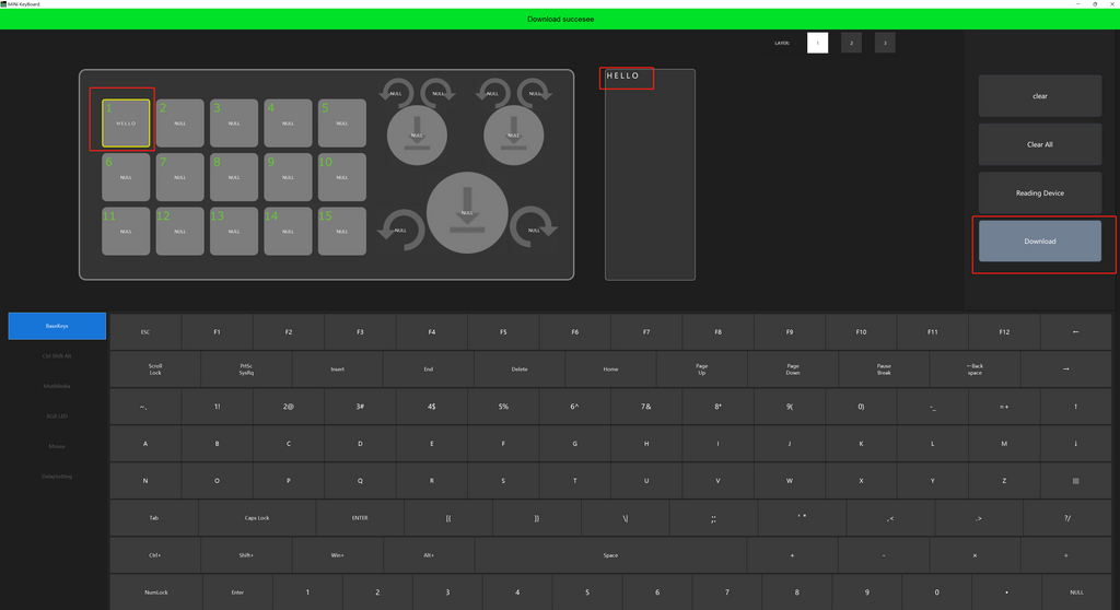 Seleccione la clave1 que desea configurar en la esquina superior izquierda, ingrese "hola" en el cuadro de entrada en blanco en el medio y luego haga clic en el botón de descarga en la esquina superior derecha. Todo el escenario está hecho.