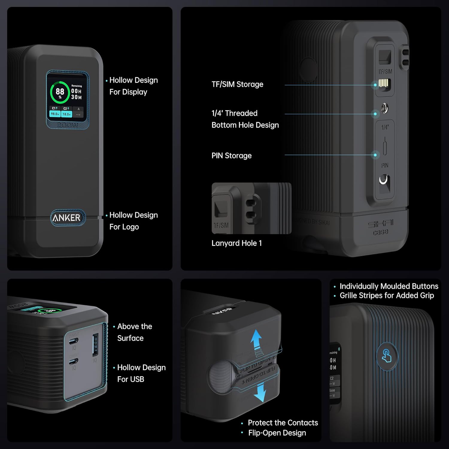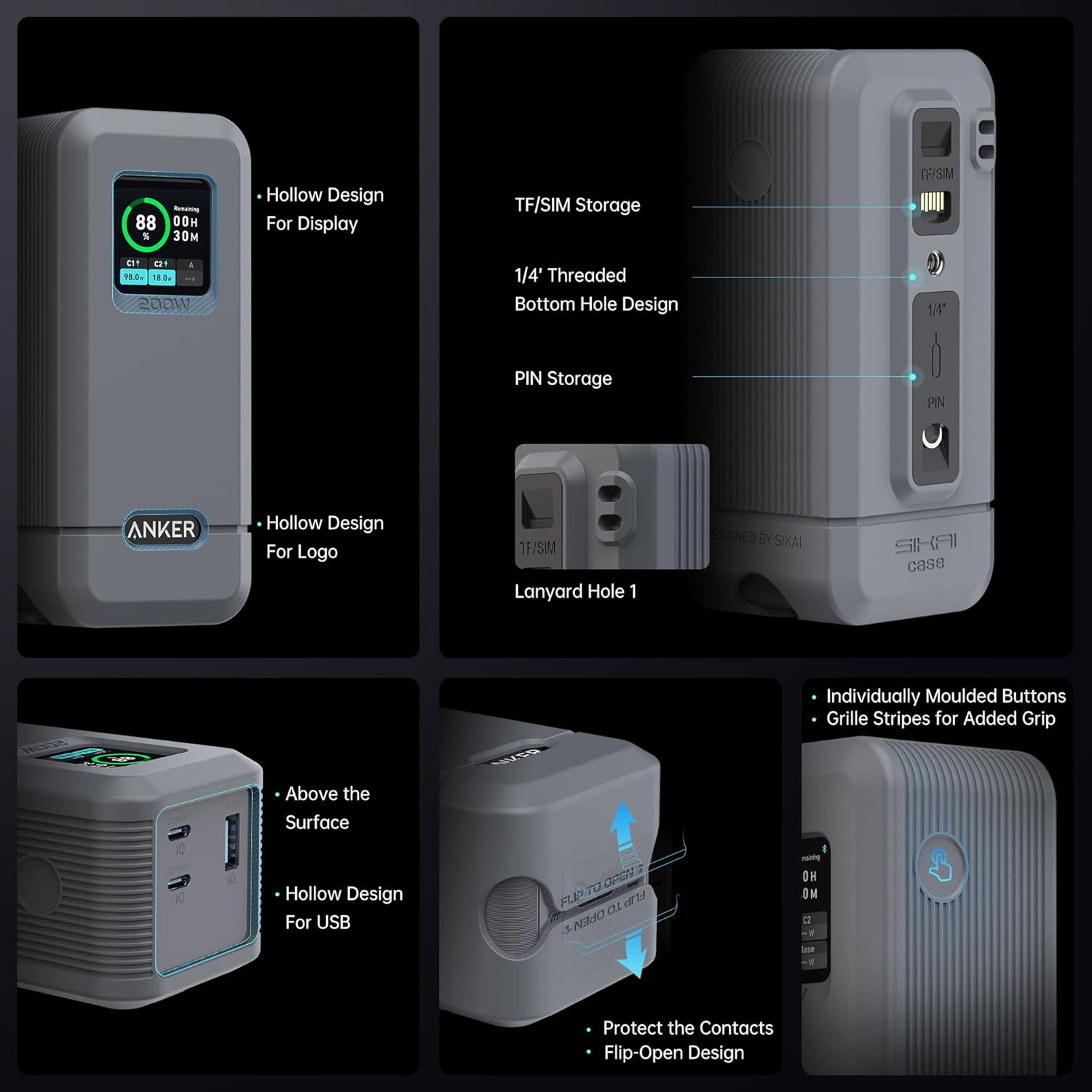 - Please ensure the model is compatible beforehand to avoid any mistakes! Perfectly suitable for Anker Prime 20,000mAh 200W Power Bank:Equipped with a 1/4-inch screw hole, TF/SM card slot, and a SIM pin storage slot. Beyond protecting the power bank and facilitating portability in daily use, it can also be used for camera charging and mounted on a camera tripod. The camera's memory card and other accessories can be conveniently stored.