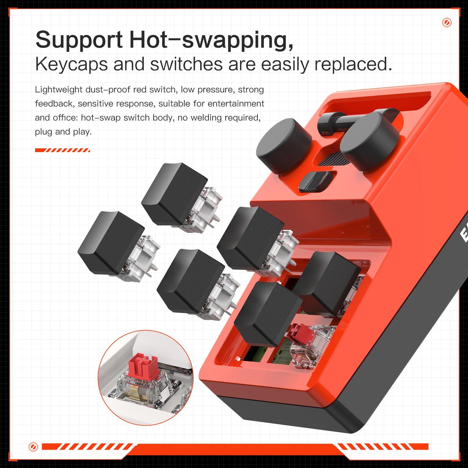 - RGB backlight can be customized to the player's desired color. The backlight brightness can be adjusted/turned off.