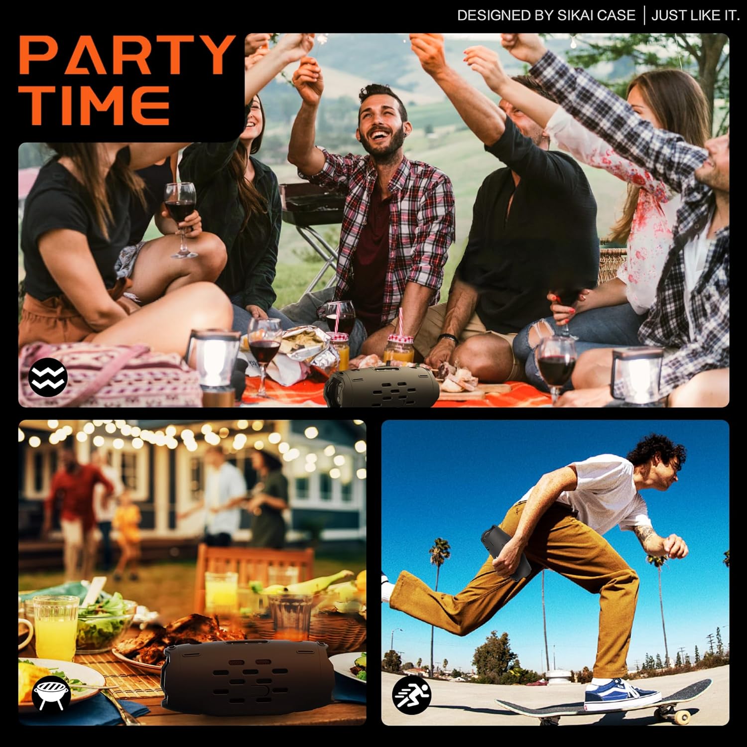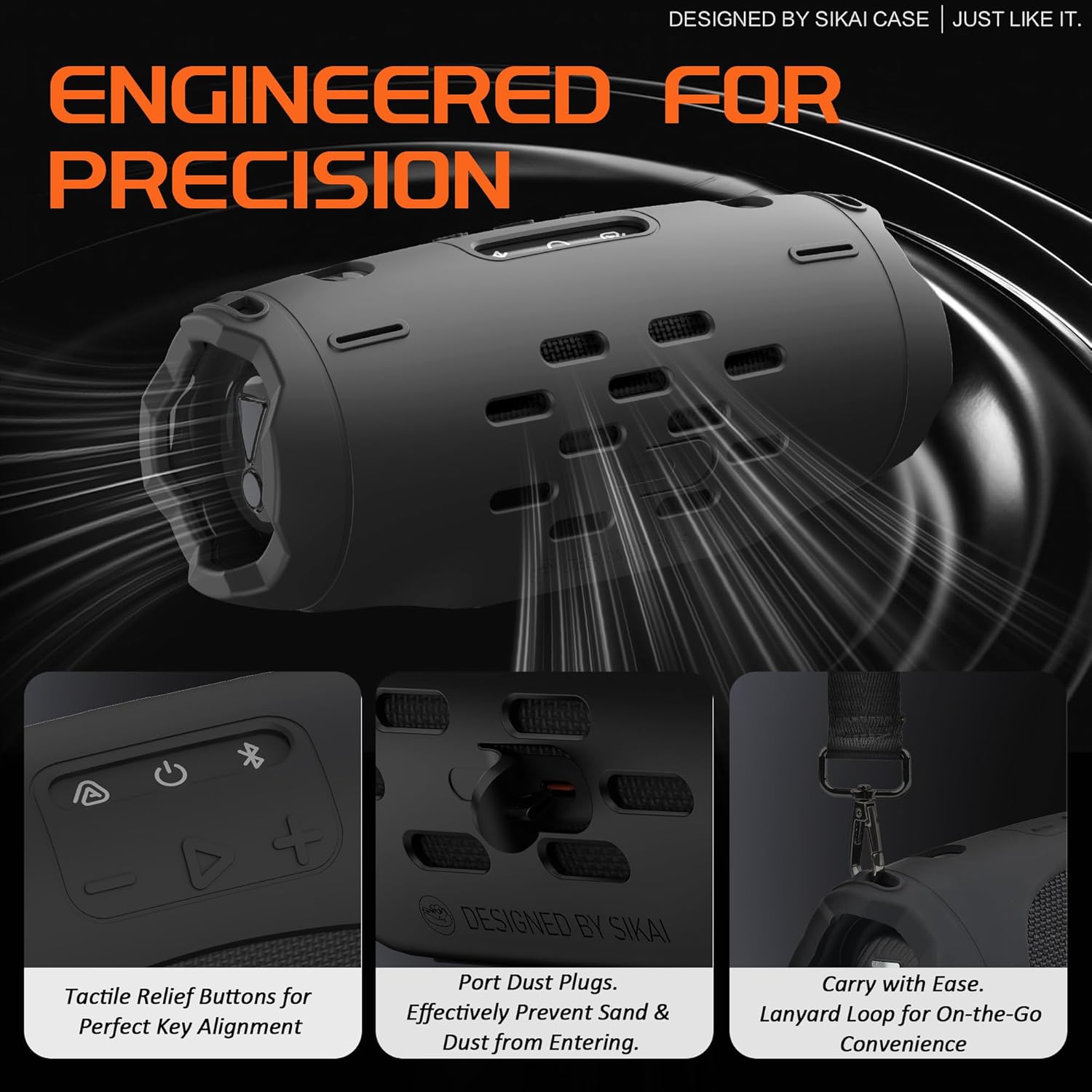 SIKAI CASE Silicone Case Compatible with JBL Charge 6, Portable Speaker Mount with Adjustable Strap & Detachable Shoulder Strap for Bike, Motorcycle, Golf Cart, Boat Railing, Case Only