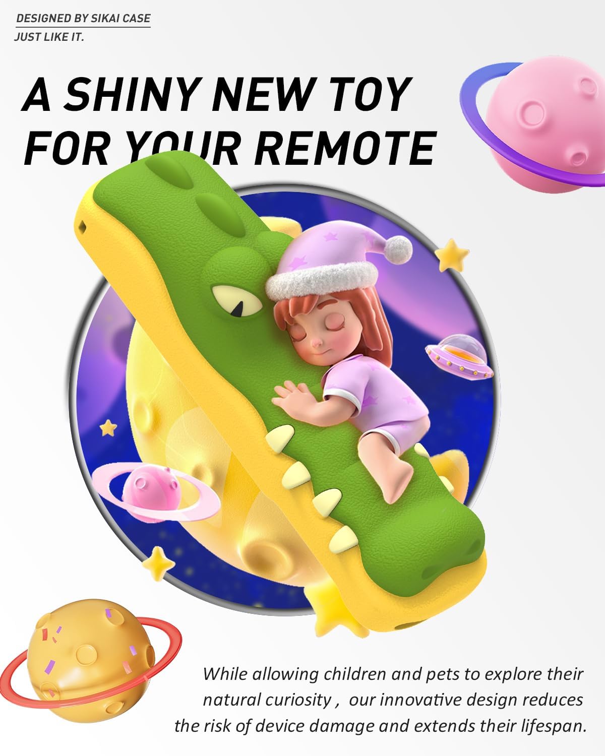 SIKAI Crocodile Shape New Silicone Case Soft Non-slip Anti-drop for Apple TV 4K Siri Remote Protection Cover + Airtag hole