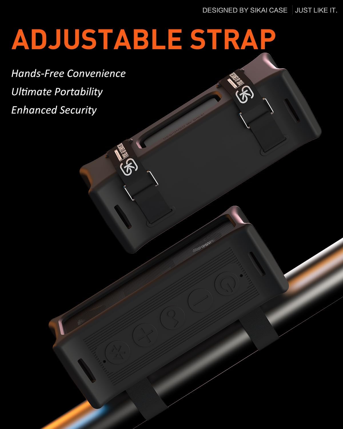 SIKAI CASE Portable Speaker Mount for Anker Soundcore 3, Silicone Case with Adjustable Strap&Handle for Bike/ATV Golf Cart/Shower, Shockproof Dustproof Build Travel Protective Cover (Black)